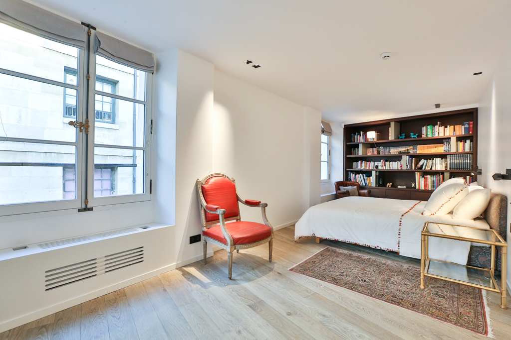 Après avoir monté le prestigieux escalier en fer forgé, tomettes et bois du XVIIème,vous prendrez possession de votre Suite, c'est-à-dire d’une Master Bedroom avec vue magnifique sur la coupole de l'Institut de France, son dressing et sa belle salle de douche de marbre, et d’une chambre plus petite soit pour des enfants soit pour un autre couple, elle-même aussi dotée d'une salle de douche marbre et granit, totalement équipée et moderne, donnant sur une terrasse privative fleurie et ombragée : cette chambre est équipée d’une télévision avec écran plat équipée d'une l\’Apple TV (abonnement Netflix inclus), et d\’une enceinte Bluetooth SoundLink Bose pour votre smartphone.